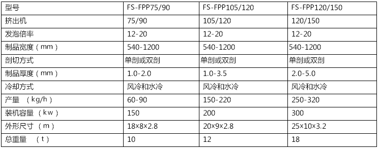 該生產線采用雙機串聯式高發泡片材生產工藝,生產的PS發泡片材是一種新型包裝材料,不但有良好的隔熱和緩沖性能,而且有珍珠般的外觀色澤。具有防震、隔音、保溫、防潮、安全衛士,可塑性等優點,經真空熱成型,廣泛應用于食品、水果、電子、日用品,五金制品等多種產品的包裝及廣告板等。