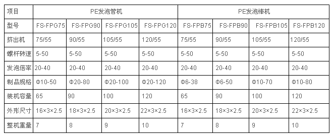 塑料發(fā)泡擠出機主要技術(shù)參數(shù)